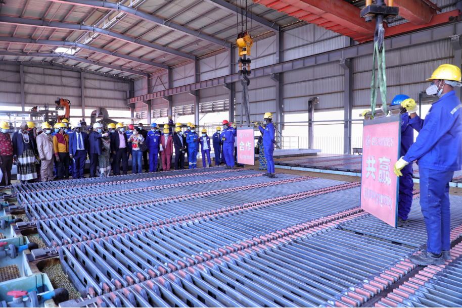 深入了解企业建设发展情况,文岗、张晋军一行实地调研考察了中色正元智慧中心、钴盐制造中心、前驱体制造中心、分析检测中心等。