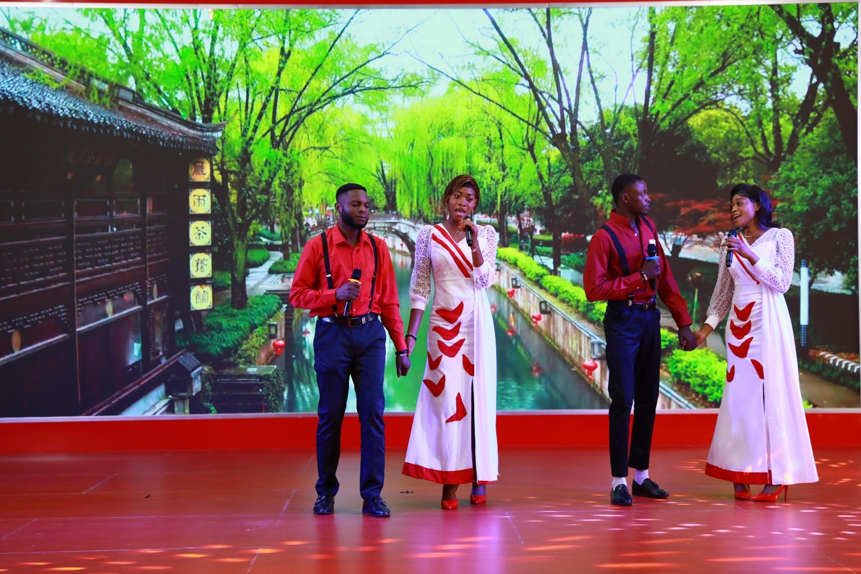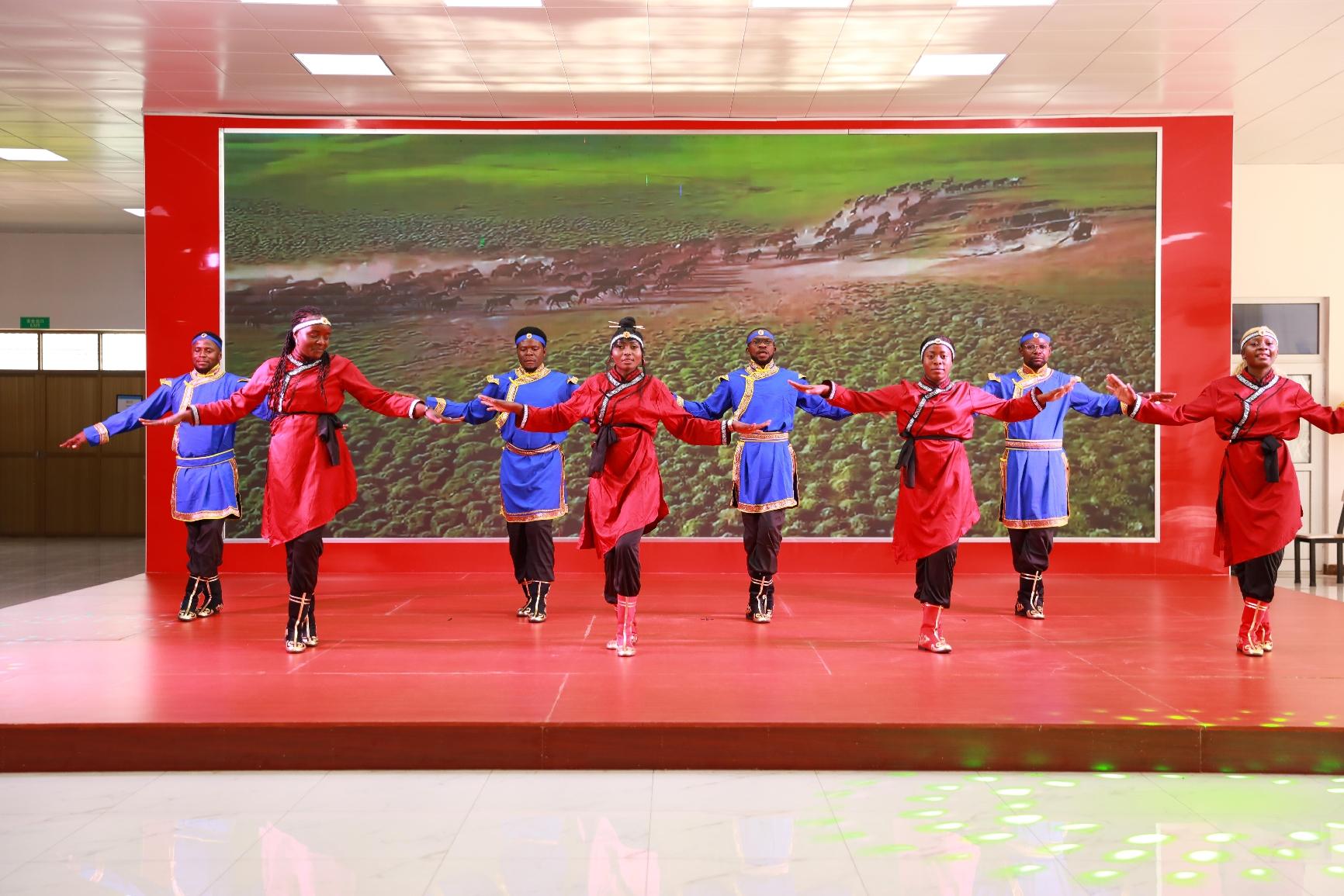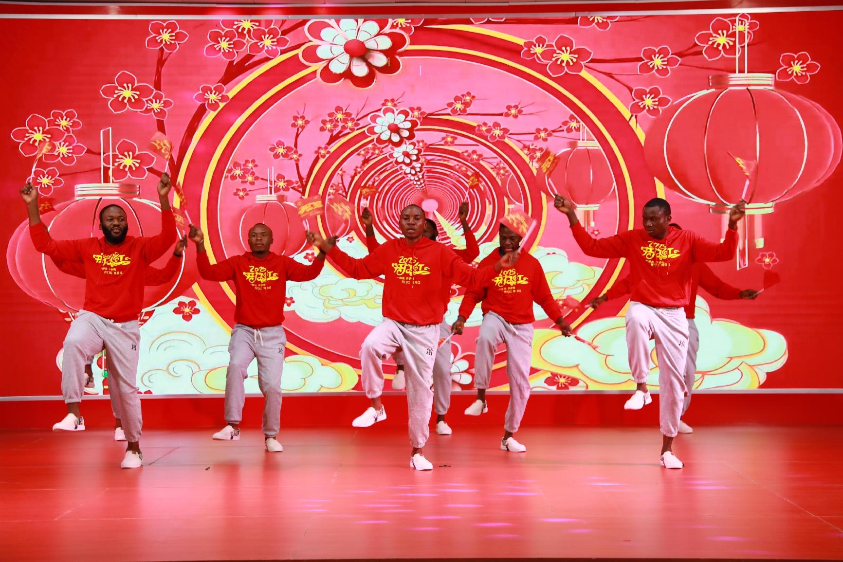 联欢会上,歌、舞、诗朗诵、相声等节目相继上演,中、刚文化在交流中碰撞、融合。