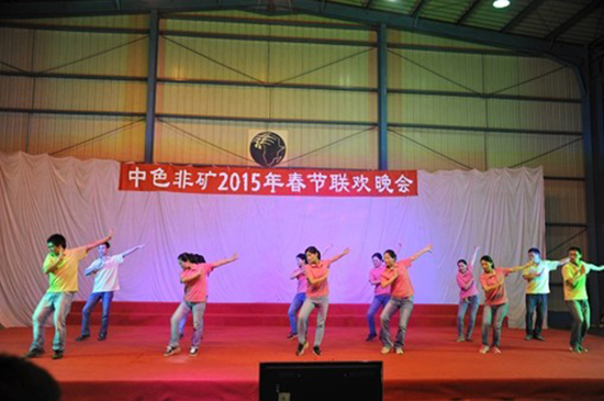 2015年除夕,中国有色集团出资企业中国有色矿业有限公司所属中色非洲矿业有限公司(简称中色非矿)沿袭企业传统,在赞比亚基特韦驻地举办了“2015年度春节联欢晚会”。广大干部职工怀着对故乡浓浓的思念之情和资源报国的坚定决心,以自编自演的形式抒发内心的情怀与抱负。
