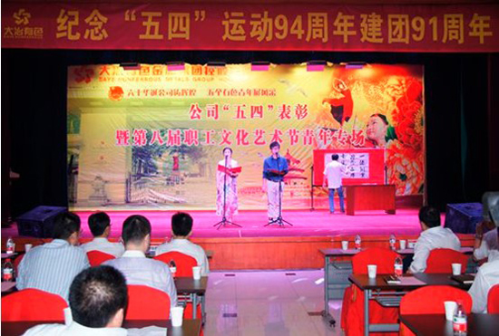 五月的今天,处处是绚丽夺目的花海;五月的今天,是永远拂动的阳光。5月6日下午,大冶有色集团团委在铜花大酒店举行了纪念“五四”运动94周年表彰会暨第八届职工文化艺术节青年专场演出,公司党委副书记、纪委书记吴礼杰,工会主席张建强,各直属单位共青团工作分管领导出席大会并观看演出。