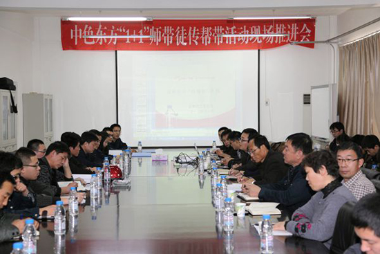 12月5日,中色东方团委在铍铜分公司二楼会议室召开中色东方“1+1”传帮带活动现场推进会。公司党委副书记、纪委书记、工会主席余春勇,钢结构分公司总经理刘文杰,铍铜分公司副总经理王顺扬,人力资源部副部长牛铁钢,集团工会副主席徐金莲,钛材分公司副总经理许道玉,金和化工综合科科长兼工会副主席李东,以及钛材分公司工会主席贺新伟、13位各子分公司师徒代表、22名团干部参加了会议。会议由公司团委副书记杨永权主持。