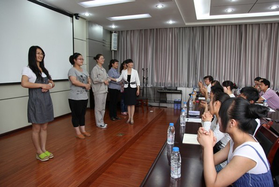 培训班上,孙老师运用生动的语言,自我示范讲解,全面细致的讲述了社交礼仪知识中的职业形象、办公室及电话、商务见面、会议安排、乘车座位等方面的礼仪知识。特别是针对社交礼仪中常见的一些错误,进行了分析和纠正。在培训过程中,还加入了站姿展示、现场见面介绍、引导等互动环节,现场气氛活跃,使大家对礼仪知识运用有了更加深刻的理解。团干部、青年代表们一边认真听课,一边做笔记,积极参与互动游戏。尤其是接近尾声的现场情景表演,选出3名青年代表运用本课所学的社交礼仪知识,进行一次即兴的接待活动,其他人员对3名青年代表的表现进行点评,使培训显得更加轻松愉快、富有收获。