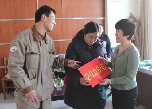 寒冬送暖,关怀就在身边。时玉华副书记与困难职工亲切交谈,鼓励他们要坚定生活的信心,勇于面对当前的困难,在组织的关怀和帮助下渡过难关。她仔细询问困难职工家庭生活情况、身体健康状况,并将慰问金送到他们手中,祝愿他们新春快乐,阖家幸福。困难职工纷纷表示会鼓起勇气、战胜困难、努力工作,为中色奥博特发展做出自己的贡献。