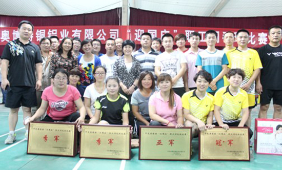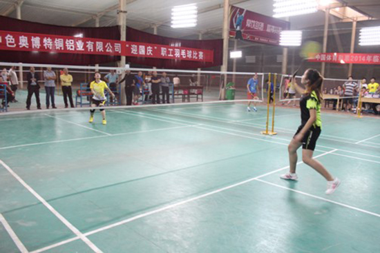 在建国65周年来临之际,中国有色集团出资企业中色奥博特铜铝业有限公司(简称中色奥博特)举办“迎国庆”羽毛球比赛,营造团结奋进的良好氛围,四支代表队、共24名职工参加比赛。