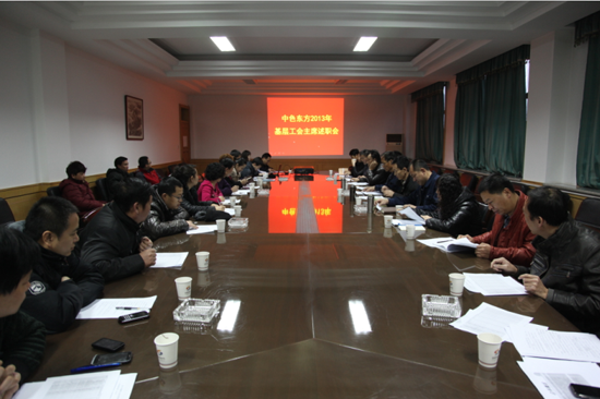 2013年12月19日,中色东方工会召开基层工会主席述职会。中色东方党委副书记、工会主席余春勇出席了会议。会议由工会副主席景晓明主持,各二级、直属及分工会主席和机关工会近40人参加了会议。