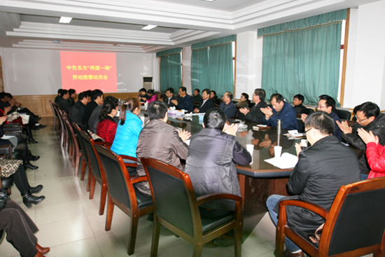 2014年2月18日,中色东方在工会三楼会议室召开“两提一降”劳动竞赛动员会。宁夏回族自治区总工会副主席拓兆功、自治区总工会经济民管部部长常洪海同志应邀出席会议,基层工会主席、工会委员会委员及集团公司工会全体员工参加会议。会议由中色东方党委副书记、工会主席余春勇同志主持。