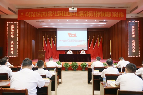 6月20日,中色大冶党委召开学习贯彻习近平总书记在庆祝中国共产主义青年团成立100周年大会上重要讲话精神研讨会暨青年精神素养提升工程动员部署会。中色大冶党委书记、董事长张晋军出席会议并以“深入学习贯彻总书记重要讲话和指示批示精神,为公司绿色高质量发展汇聚磅礴青春力量”为题,向广大青年讲授精神素养提升“第一课”。中色大冶党委副书记、工会主席王勃主持会议。
