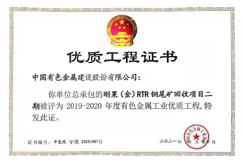 刚果(金)RTR项目荣获2019-2020年度中国有...