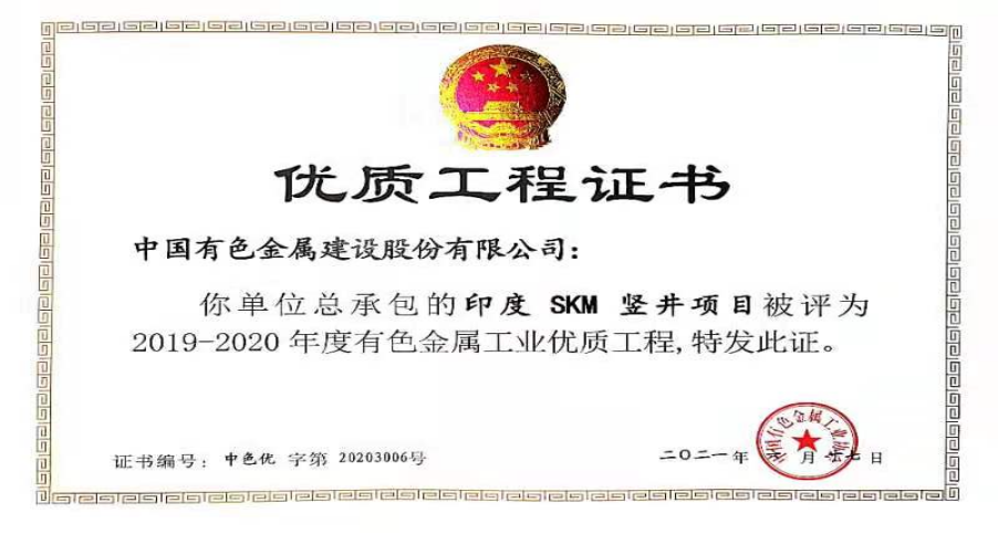 印度SKM项目荣获2019-2020年度中国有色金属...